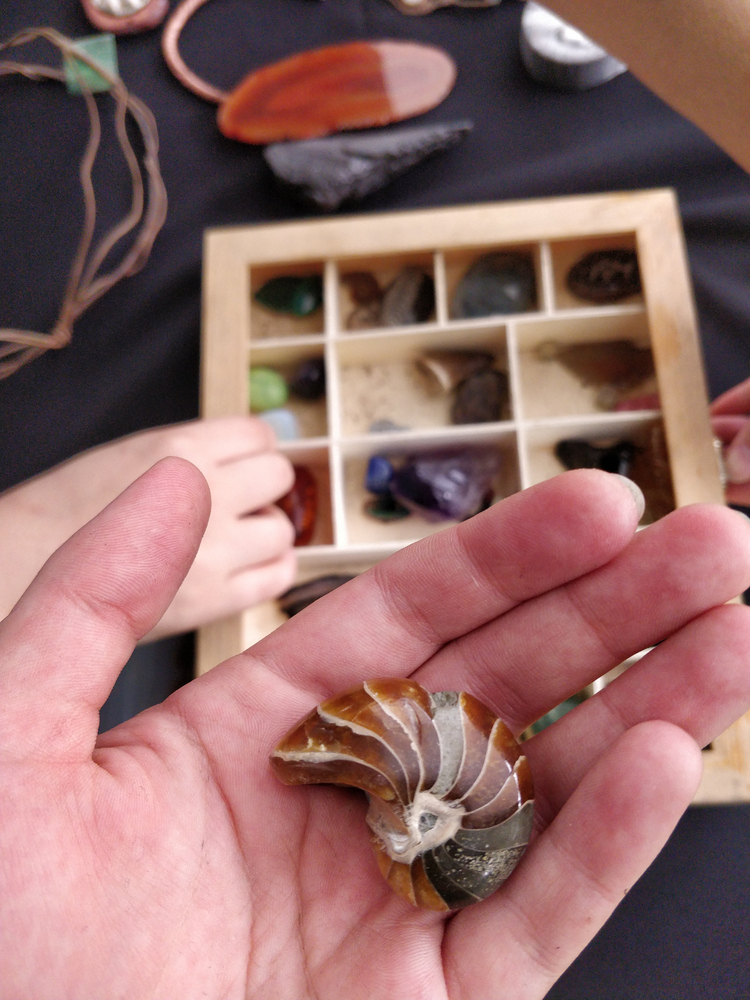 Praktycznie od razu po zabawie w kowalstwo poszłam na warsztaty z aromaterapii, a konkretnie robienia świeczek, organizowane przez Zapachy Sieli. Muszę przyznać, że stół z rzeczami potrzebnymi do warsztatów był najpiękniejszą rzeczą jaką widziałam na tym konwencie. Było na nim mnóstwo malutkich buteleczek z olejkami eterycznymi, trochę większe buteleczki z minerałami i kamieniami szlachetnymi oraz mnóstwo zasuszonych roślin. Zdarzało mi się kiedyś przerabiać świeczki, ale nigdy nie dodawałam do nich olejków zapachowych, a tym bardziej nie ozdabiałam ich suszonymi roślinami. Co prawda dowiedziałam się na tych warsztatach, że praca z woskiem sojowym (który ostatnio mnie bardzo zainteresował) jest dużo trudniejsza niż może mi się wydawać, ale i tak czuję się zachęcona żeby kiedyś zabrać się za samodzielne robienie takich świeczek. Zwłaszcza, że te warsztaty były naprawdę relaksujące.