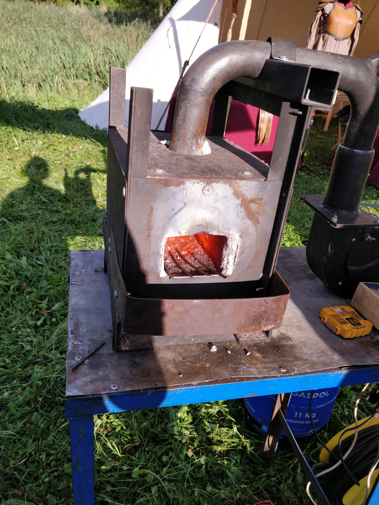 Nie byłam jednak w stanie zrobić całości na raz, bo byłam jeszcze zapisana na warsztaty z wykuwania słowiańskich fibuli w Kuźni Mordoru. W przeciwieństwie do niegdysiejszych warsztatów na Holokronie tym razem dostałam rękawice, skórzany fartuch i okulary ochronne. Inną różnicą było to, że kuliśmy ze stali, a nie żelaza. Jak to z pracą z rozgrzanym metalem bywa, za każdym razem kiedy już się nagrzał czekał nas swego rodzaju wyścig z czasem i przyznaję że czasami bywało ciężko. Na szczęście ostatecznie wszystkim uczestniczkom udało się wykuć po jednej fibuli. Jednak jak z takiej fibuli się korzysta pozostało dla mnie zagadką jeszcze na kilka dobrych godzin.